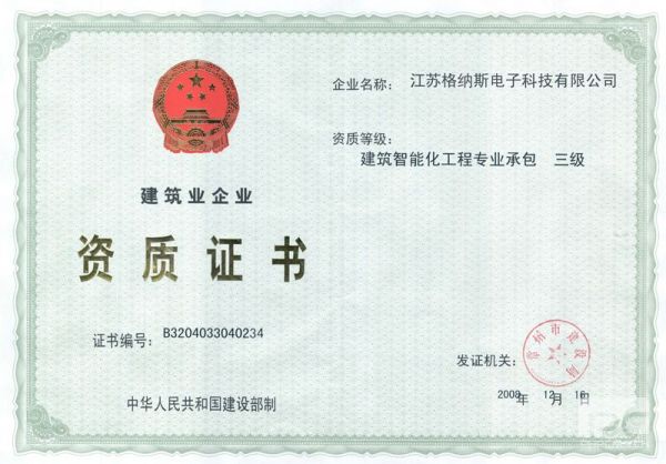 | 资质单位: 江苏格纳斯电子科技有限公司 |