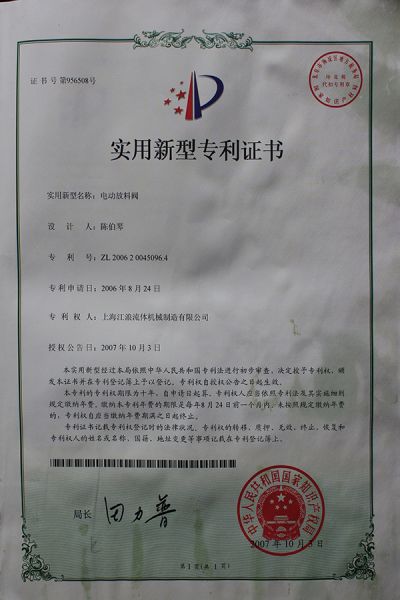气动隔膜泵成套控制设备实用新型专利证书