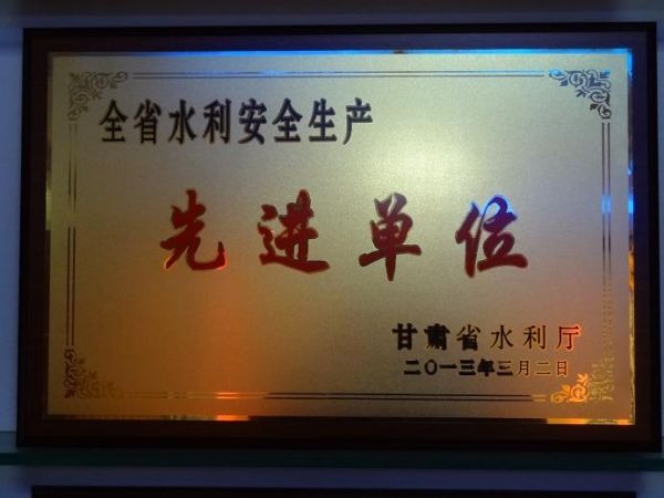 2013年3月2日被甘肃省水利厅评委“全省水利安全生产先进单位