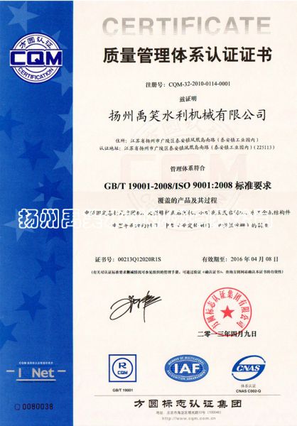 | 资质单位: 扬州禹笑水利机械有限公司 |