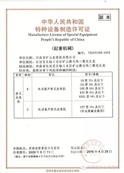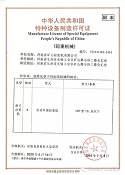 电动葫芦桥式许可证 发布时间: 2017-07-20 16:15:57 发布网站: 中国安防招标网