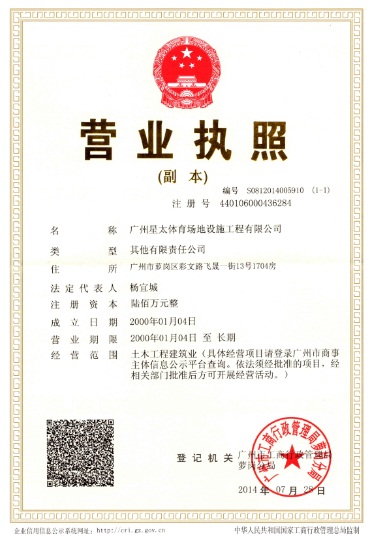 | 资质单位: 广州星太体育场地设施工程有限公司 |