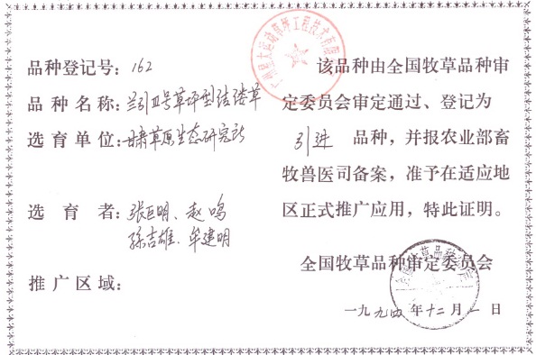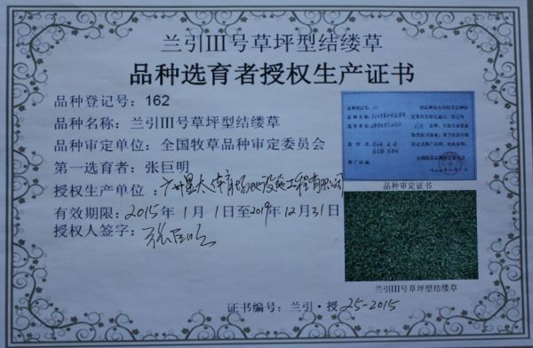 资质名称: 品种选育者授权生产证书 |