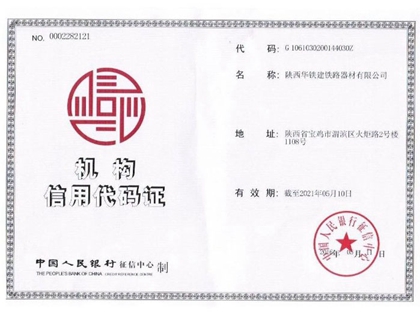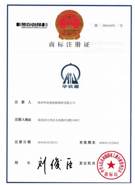 | 持证单位: 陕西华铁建铁路器材有限公司 |